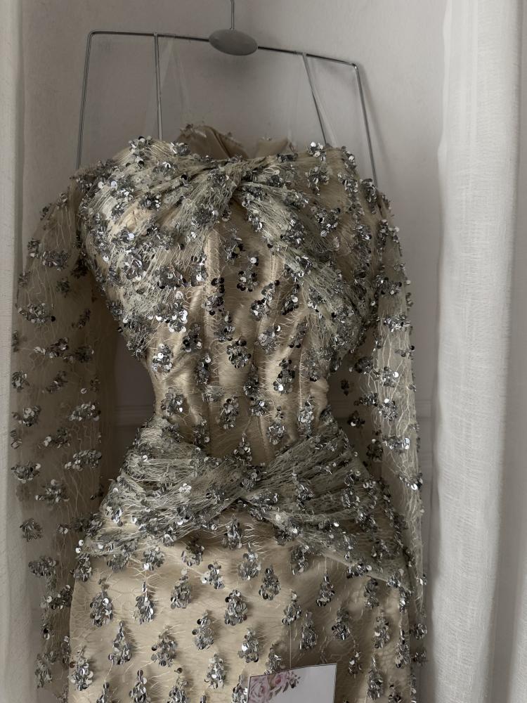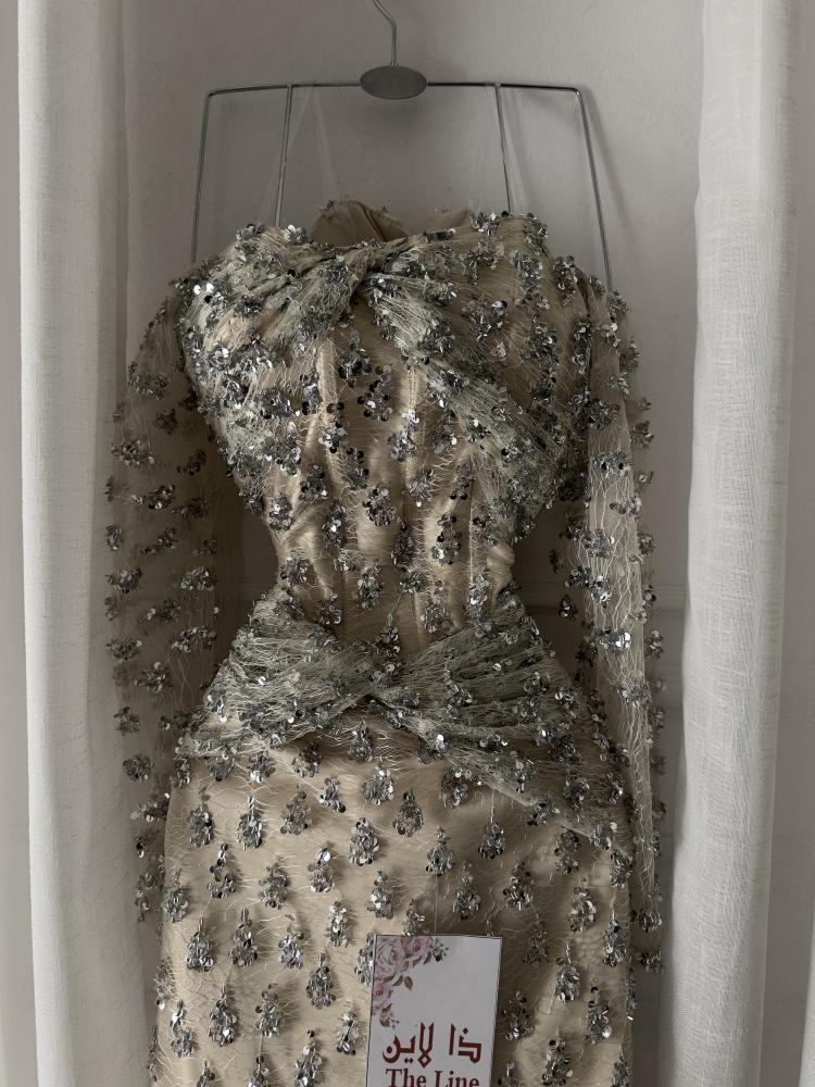 تميّزي بإطلالة فخمة تخطف الأنظار مع فستان سهرة مزين بخرز بتصميم راقٍ يجمع بين الفخامة والأنوثة في آنٍ واحد. فستان صُمم بعناية ليمنحك حضورًا ملكيًا يعكس ذوقك الرفيع وثقتك بنفسك في كل مناسبة فاخرة.