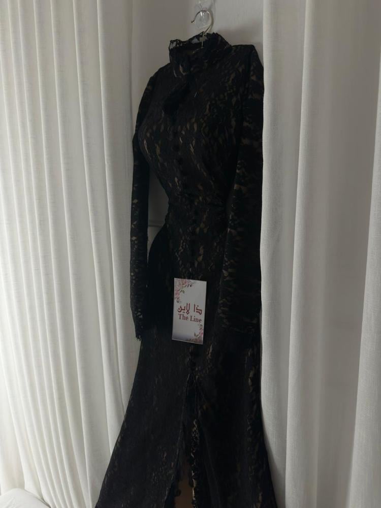 - مصنوع من دانتيل فاخر ناعم الملمس ينسدل برقي على القوام، مع بطانة حريرية خفيفة تمنحك إحساسًا بالراحة والرفاهية طوال السهرة.