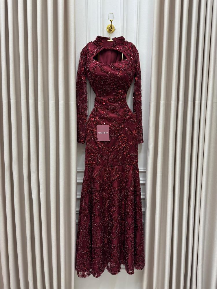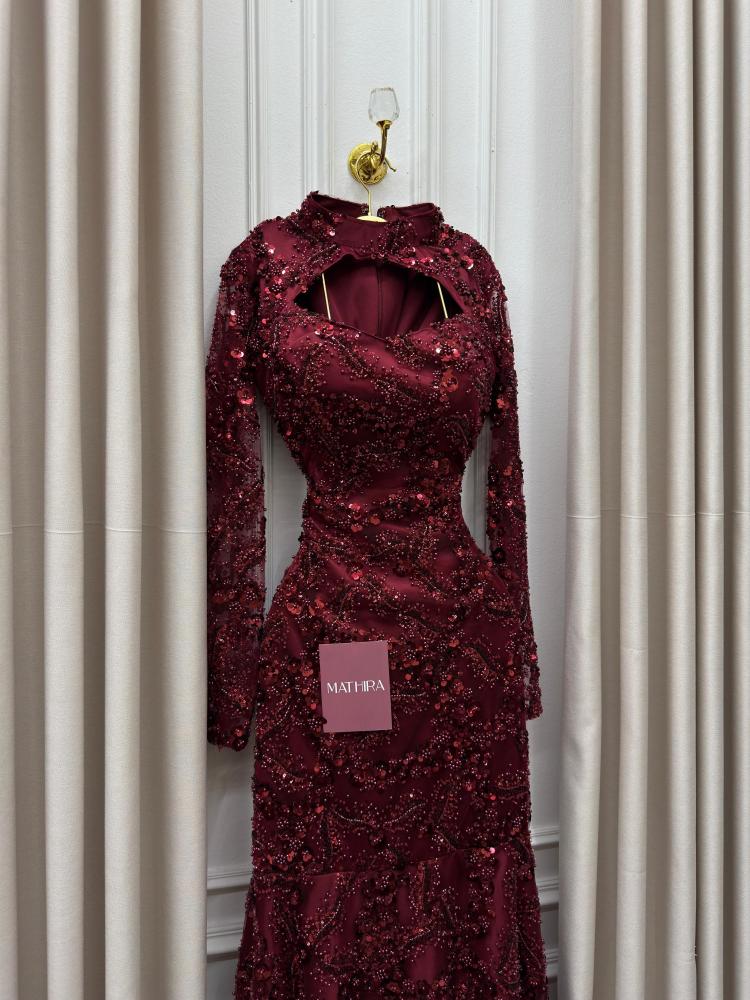 فستان نوره سهره مع الترتر بلون العنابي