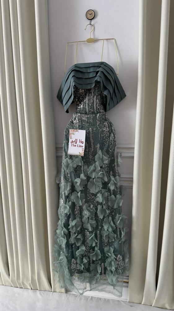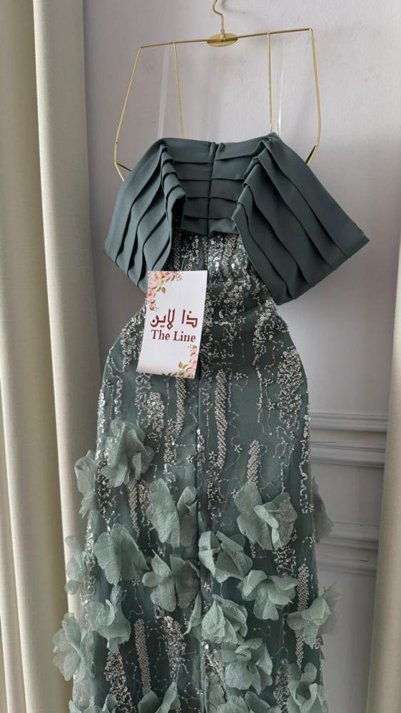 - التصميم: تصميم أنثوي فخم بتطريز دقيق يبرز تفاصيل الفستان بلمعة راقية تضيف لمسة من السحر والرقي.