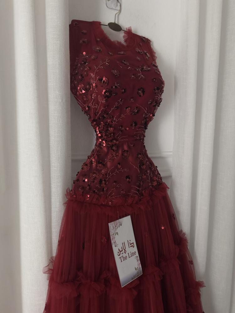 تألّقي بإطلالة ساحرة مع فستان أحمر مميز بتصميم تل مزين بالترتر على الصدر، يجمع بين الفخامة والأنوثة في مظهر يخطف الأنظار. فستان صُمم بعناية ليبرز جمالك بأناقة لافتة ويمنحك حضورًا راقيًا يناسب أرقى السهرات والمناسبات الخاصة.